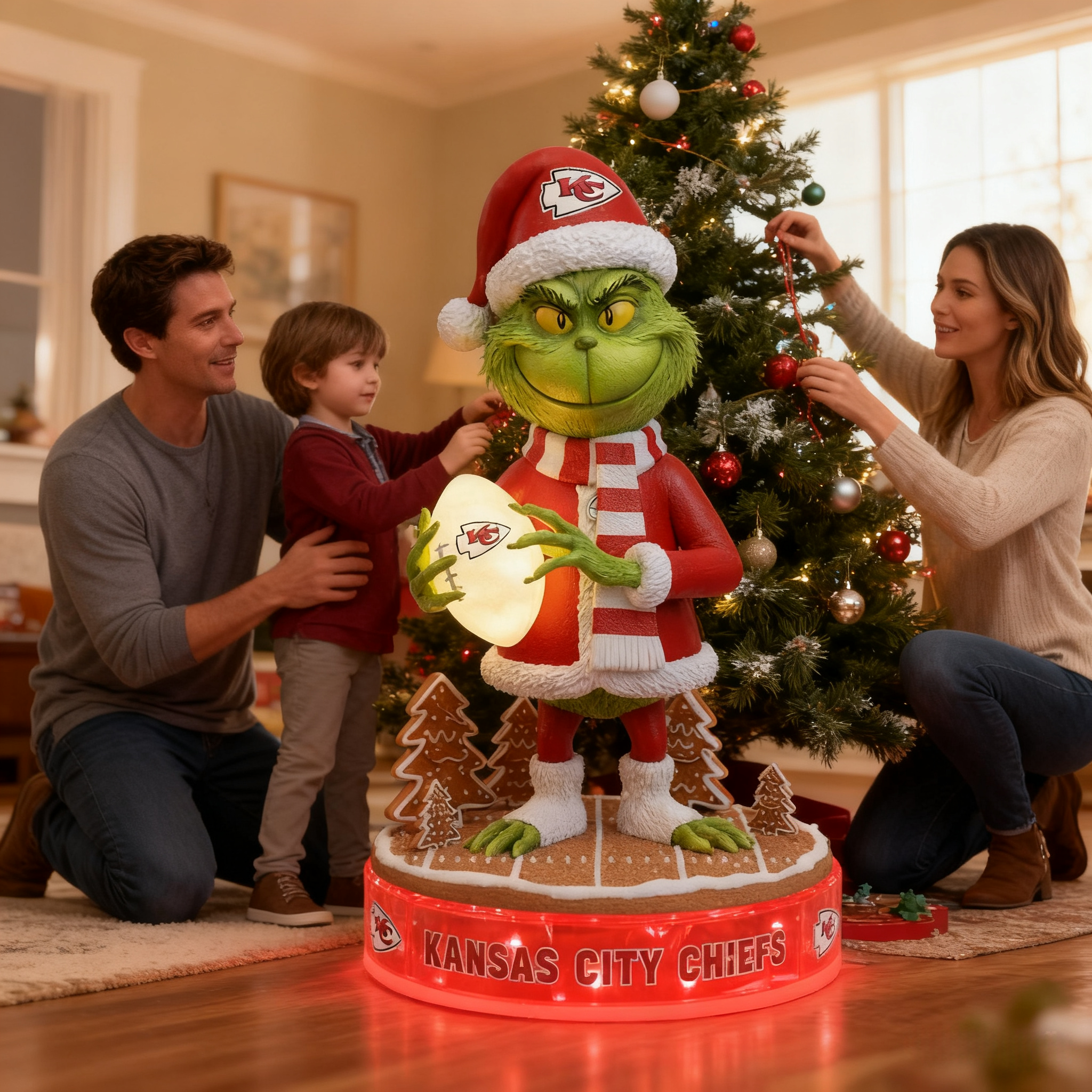 🎄🏈Bring a touch of mischievous holiday cheer and fan spirit to your home with this charming Grinch collectible statue! Perfect for fans of the beloved holiday classic and a certain competitive spirit, this meticulously crafted figurine captures the Grinch in a festive winter outfit, holding a glowing, football-shaped ornament.